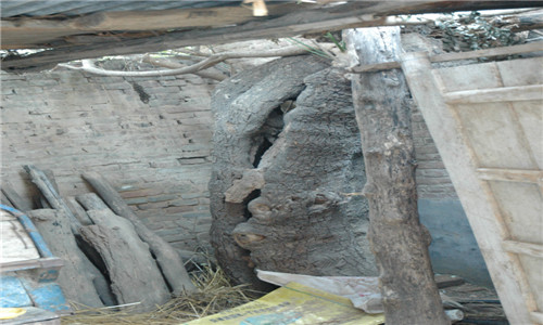 我们为此树拍照时,听村民们讲述了这样一个离奇的故事:有一个外乡人开三马车从此地经过,因为树枝挡住了去路,他就停车把树枝掰断了,等他再去开车离去时,车子竟然翻了。当地村民说他惊扰了树仙,让他买来香火和鞭炮,还在树旁烧香、燃放鞭炮,请求树仙的原谅。等他再次去开车,顺利启程。这虽然带有封建迷信的色彩,但是也正反映出村民们对古树名木的重视程度。